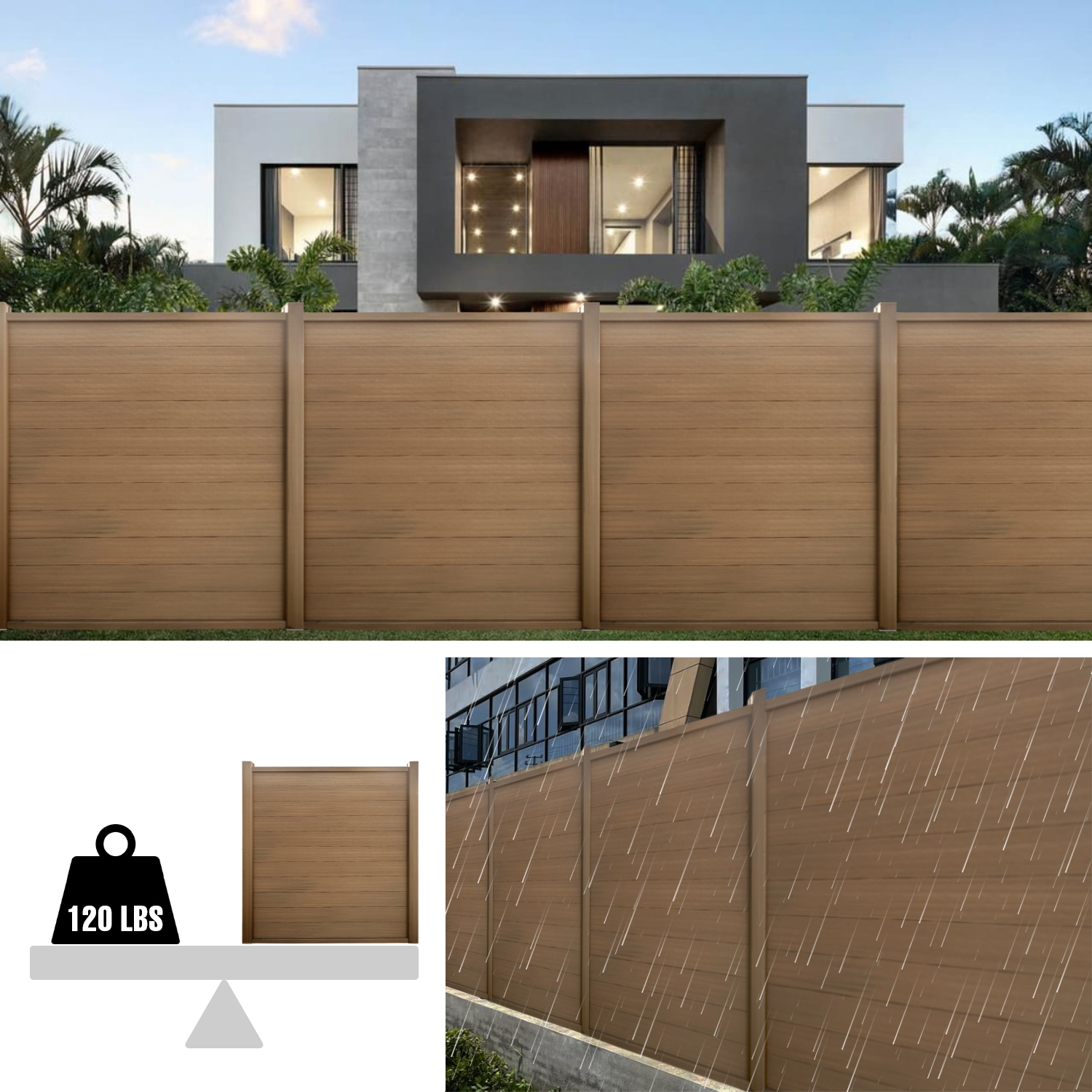 High-grade WPC fence, thickness and weight is much greater than ordinary WPC, stronger, more resistant to deformation, suitable for buyers who value quality